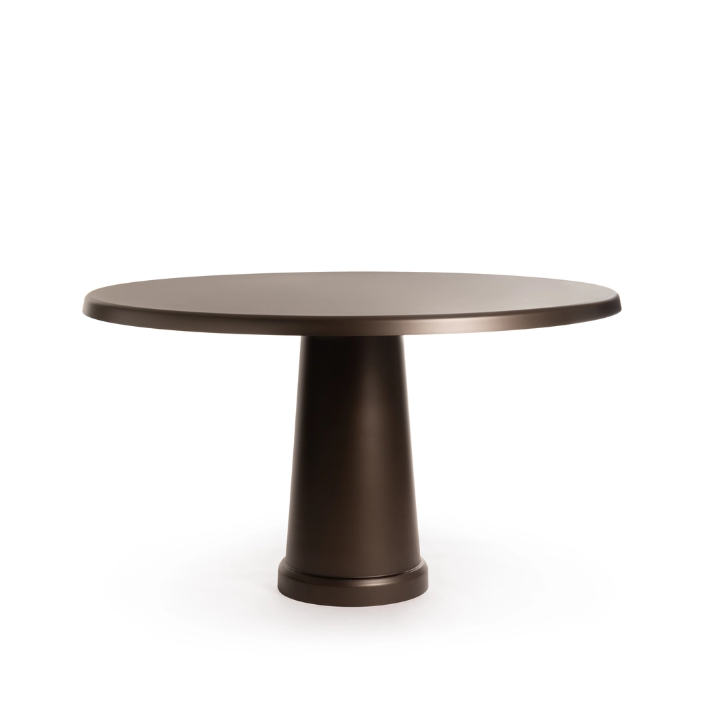 Table. Material: base in steel plate painted in polyester powder. Top in steel plate painted in polyester powder or in MDF veneered oak, natural.