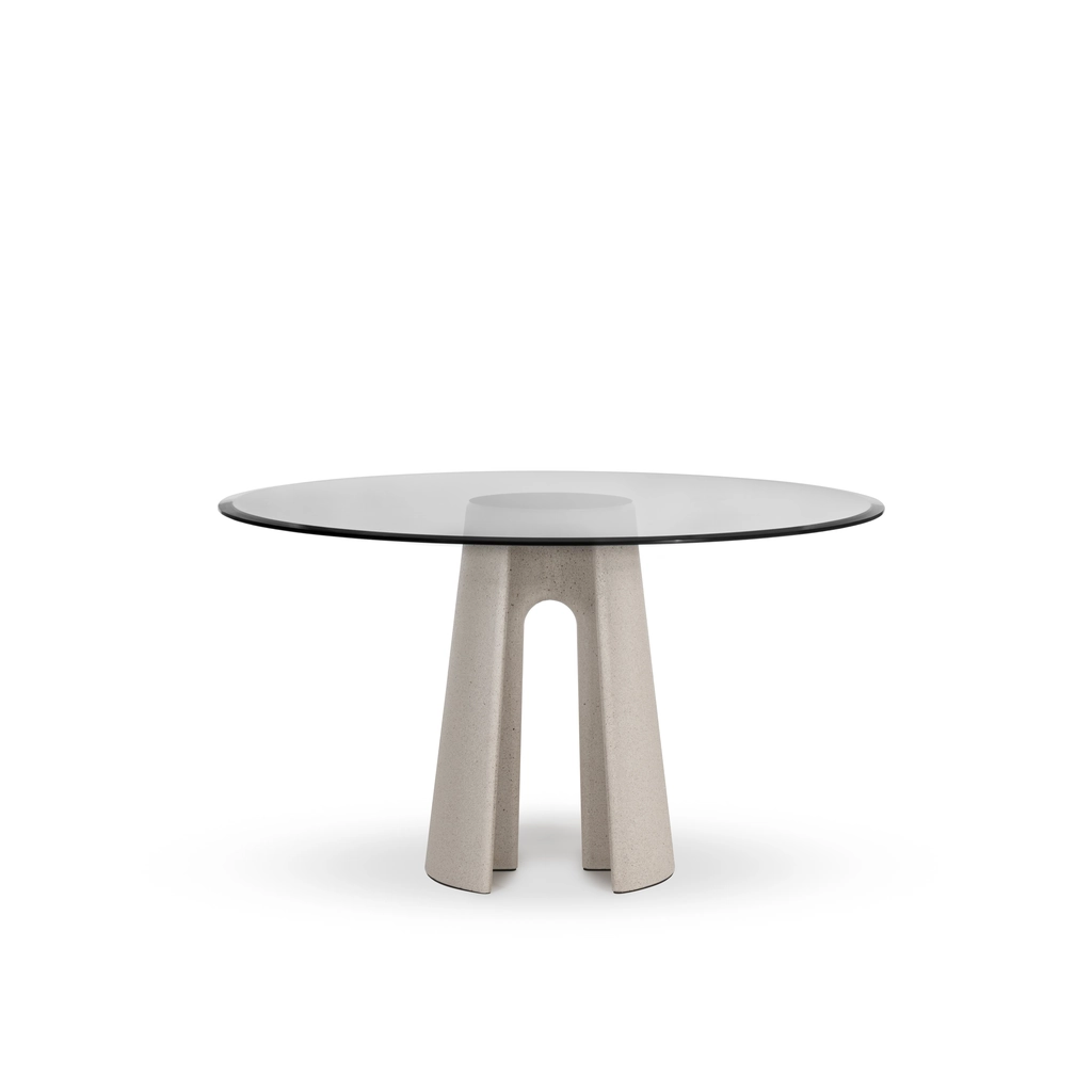 Table. Materials: base in concrete. Top in tempered glass, or in MDF veneered oak.