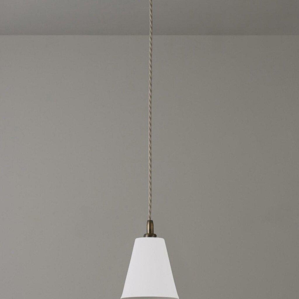 A beautifully simple collection of antique brass pendants, choose from 6 of our classic bone china shades in a matt finish, combined with a traditional twisted braided cable. These pendants work well on their own to provide light where is needed but for impact and to make a statement why not go for all 6 hung at different heights over a dining table or kitchen island.