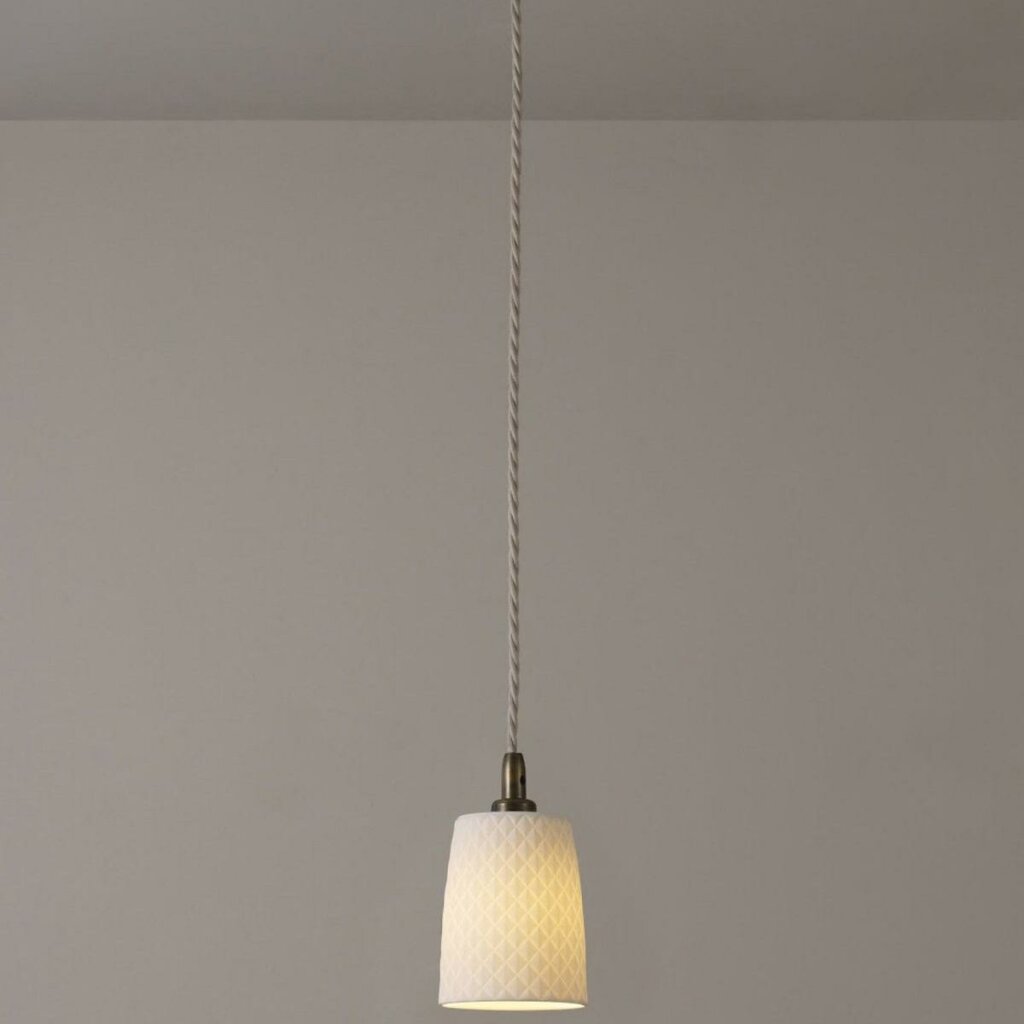 A beautifully simple collection of antique brass pendants, choose from 6 of our classic bone china shades in a matt finish, combined with a traditional twisted braided cable. These pendants work well on their own to provide light where is needed but for impact and to make a statement why not go for all 6 hung at different heights over a dining table or kitchen island.