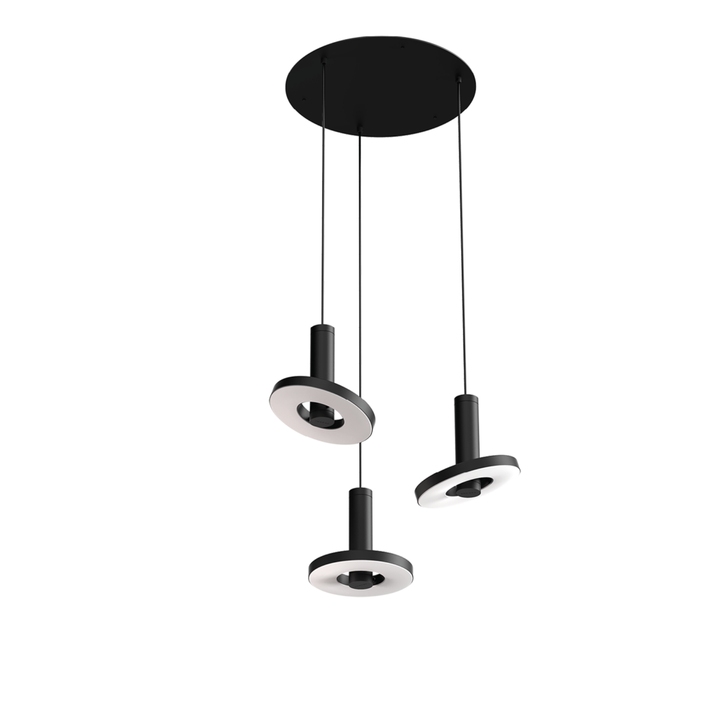 Three-in-circle: The Beads three in circle is a set of 3 Beads pendants with a round frame of black powder-coated aluminium. The Beads 3-in-circle is dimmable through an external LED dimmer (not included). The temperature of the light ranges from 2100K to 2800K (dim to warm).