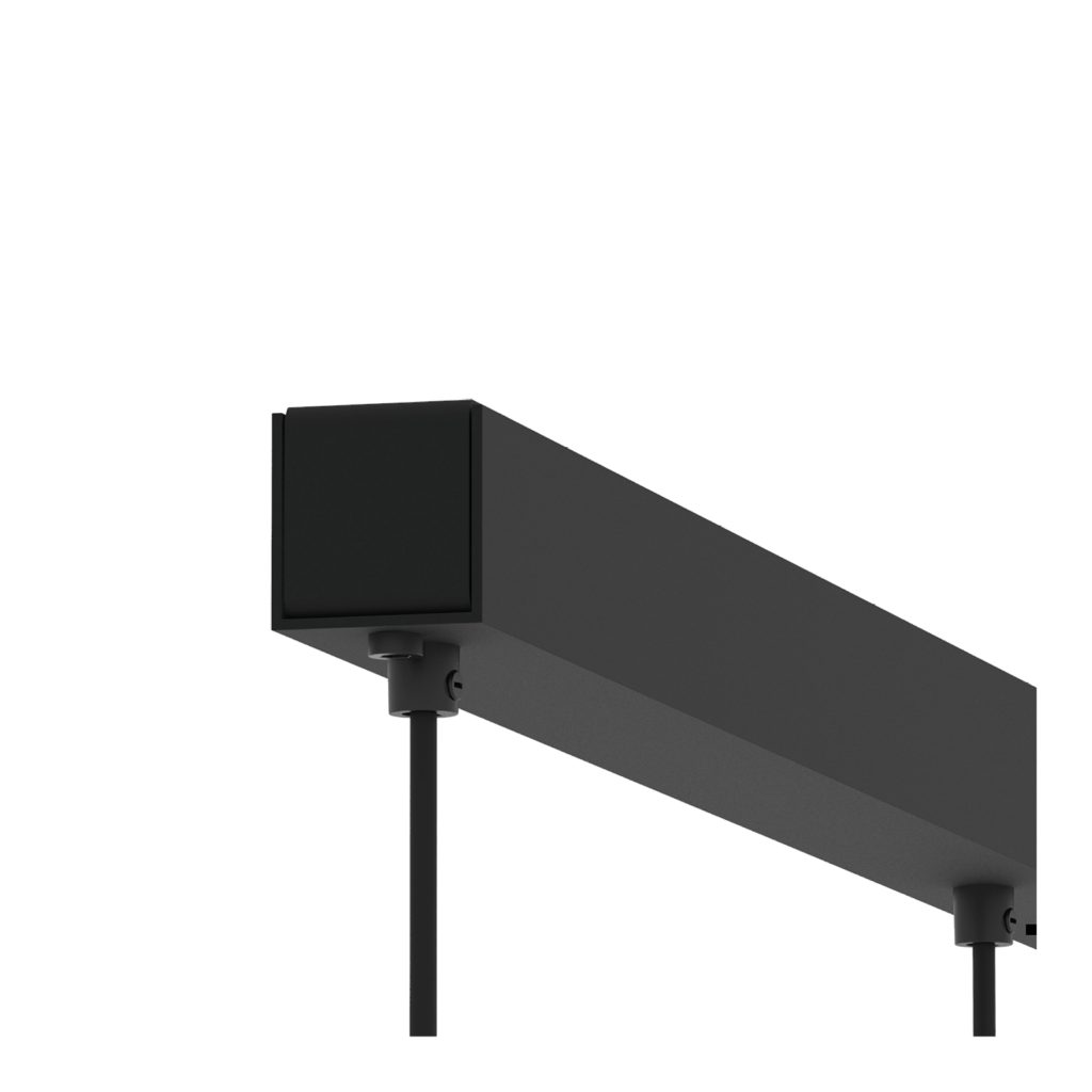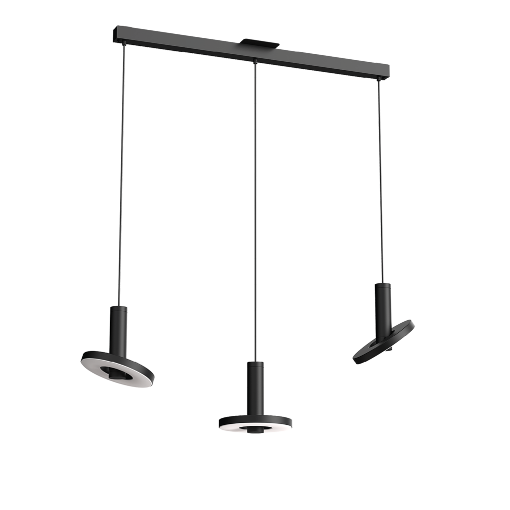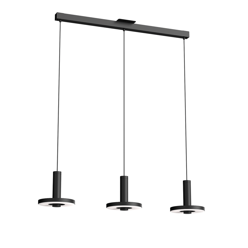 The lightweight Beads pendant lamp is made of black powder-coated aluminium and is equipped with a high-quality integrated LED light source. Three-in-a-row: The Beads three in line is a set of three Beads pendants with an elongated frame of black powder-coated aluminium.