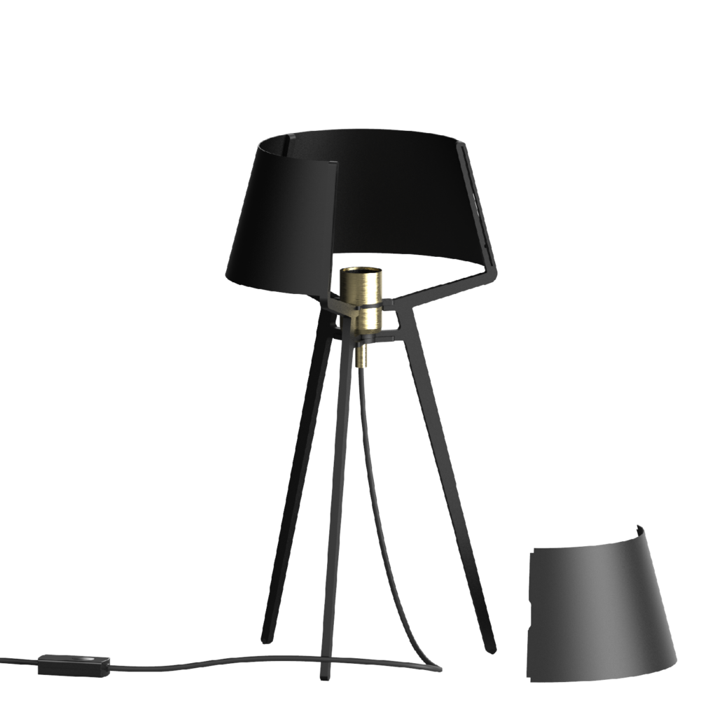 However, the power of the design lies not only in what you can see, but also in what you don’t see. Bella’s three legs, for example, continue seamlessly toward the lampshade where they form the ribs. In-between these ribs you will find a slot where you can clamp the loose plates. The fitting is the only part that is secured with a screw, which is subtly concealed under a cover.