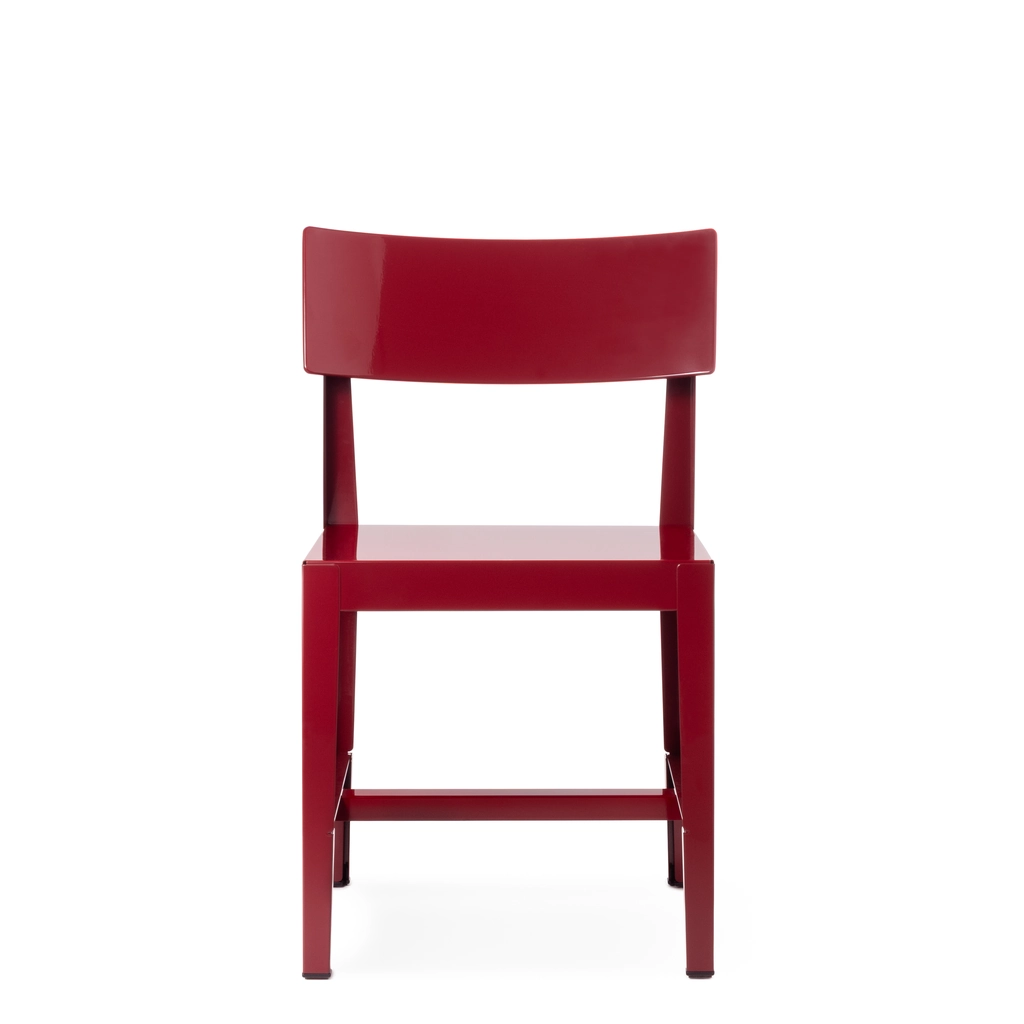 Chair. Materials: steel plate painted in polyester powder. Seat cushion available.