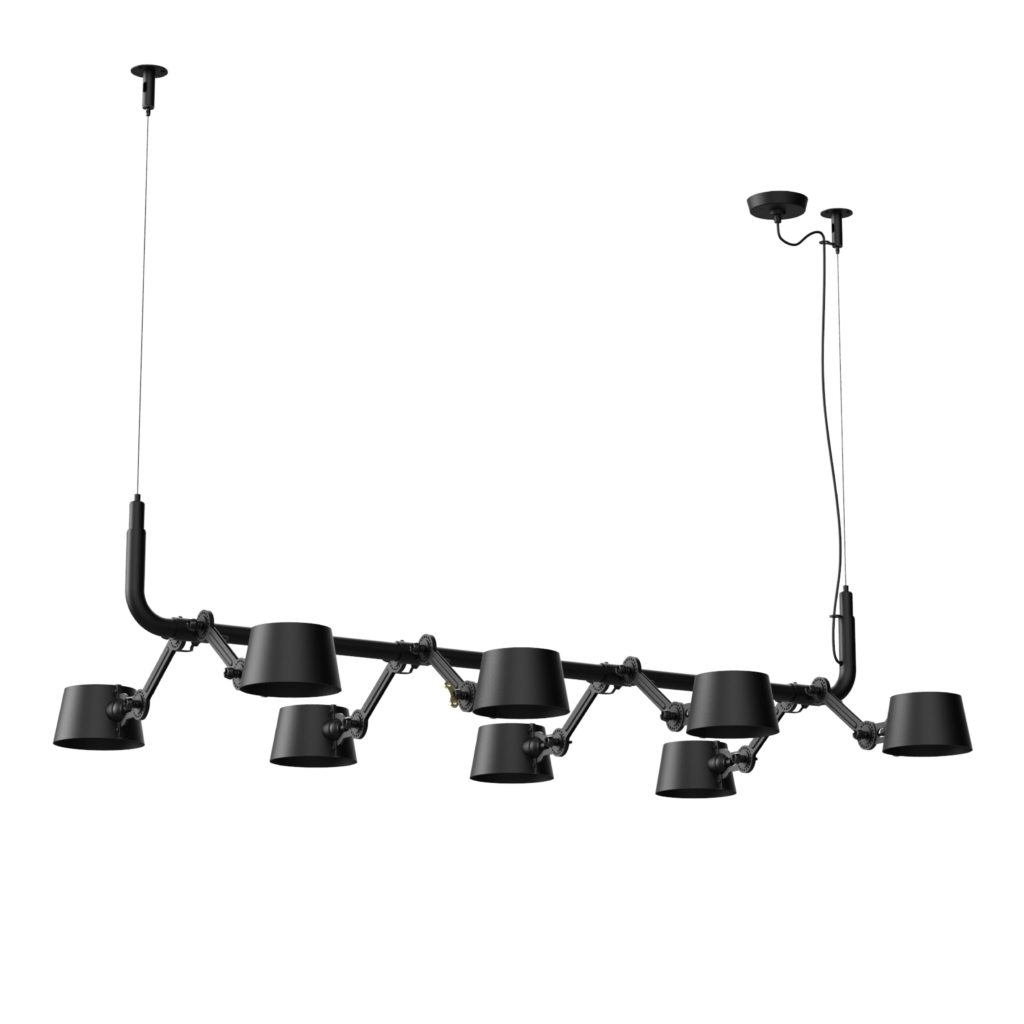 The Tonone Bolt 8-Pack Pendant is a design by Anton de Groof. The sturdy industrial lamp series BOLT is recognisable by functionality in shape, clean lines, and the iconic leading role of the wingnut. The Bolt series is available in 29 models. The 8-Pack Pendant is characterised by a frame with 8 adjustable powder-coated steel arms and powder-coated aluminium shades.