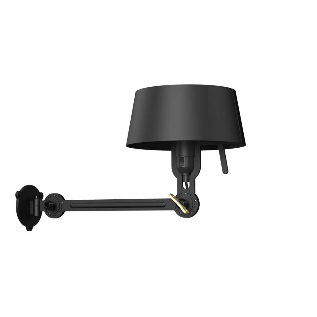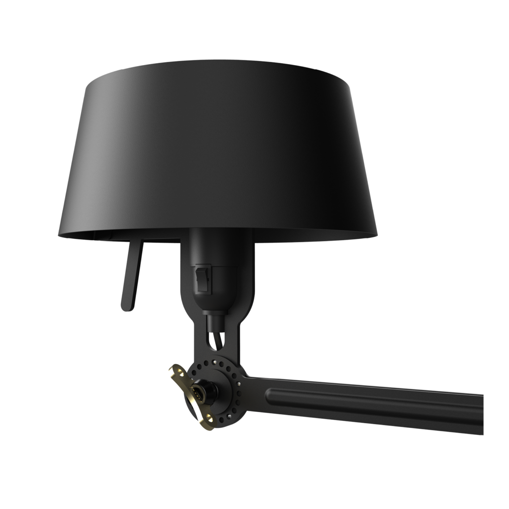 The Tonone Bolt Bed Underfit is a design by Anton de Groof. The sturdy industrial lamp series BOLT is recognisable by functionality in shape, clean lines, and the iconic leading role of the wingnut. The Bolt series is available in 29 models. The bedside lamp is characterised by an adjustable powder-coated steel arm and an open shade made of powder-coated aluminium. The open shade ensures a nice distribution of light. The bedside lamp also has a hinge on the wall plate, which allows it to swivel horizontally. The switch is located on the fitting.
