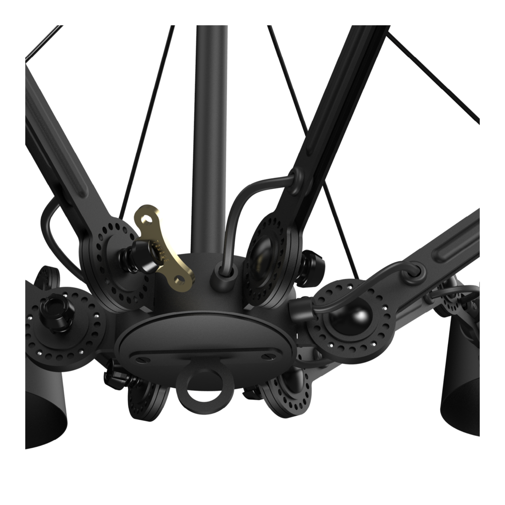 The Tonone Bolt Chandelier 6 arm is a contemporary chandelier by designer Anton de Groof. This impressive chandelier is characterised by its six adjustable powder-coated steel arms and powder-coated aluminium lampshades. The open shades ensure a nice distribution of light. The chandelier is adjustable with the wingnut. The chandelier can be adjusted to various positions as desired, giving the lamp a unique look.
