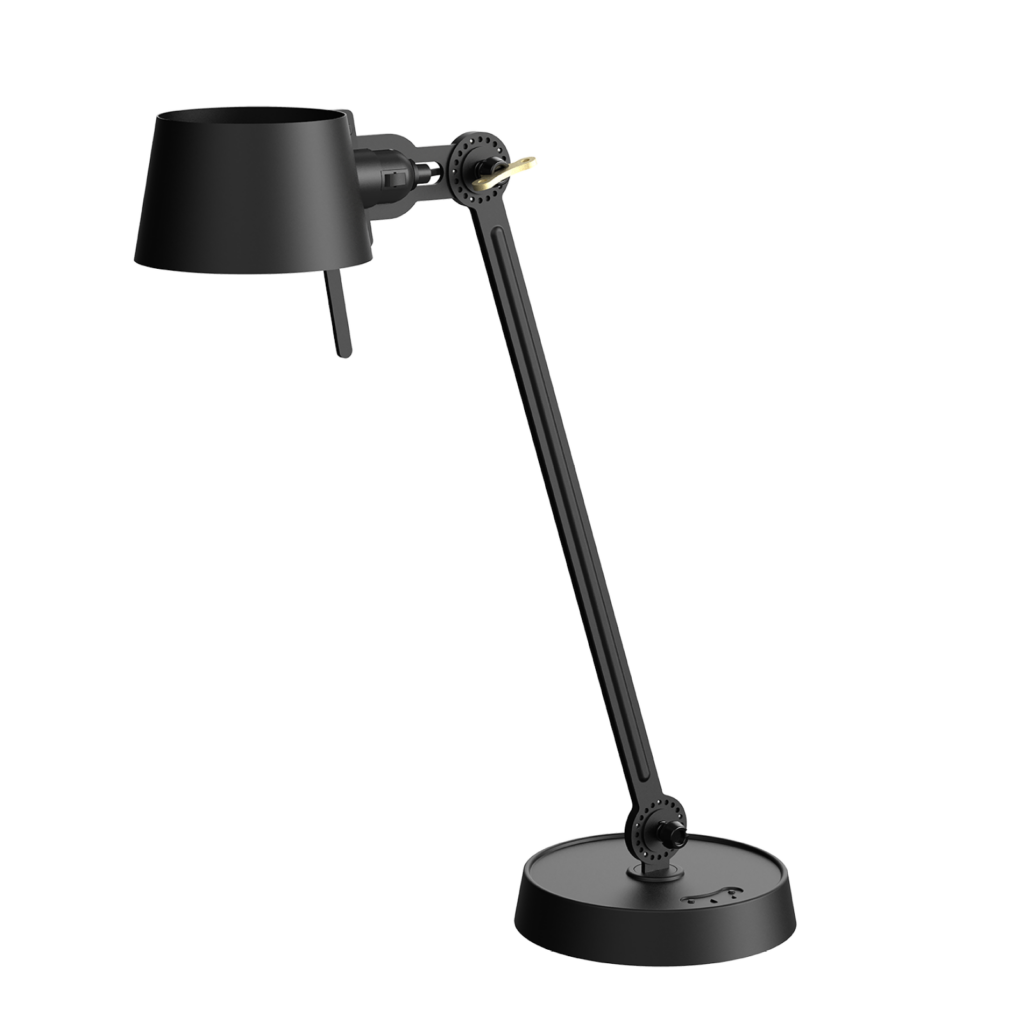 The Tonone Bolt Desk 1 arm foot is a design by Anton de Groof. The sturdy industrial lamp series BOLT is recognisable by functionality in shape, clean lines, and the iconic leading role of the wingnut. The Bolt series is available in 29 models. The desk lamp is characterised by an adjustable powder-coated steel arm and an open shade made of powder-coated aluminium.