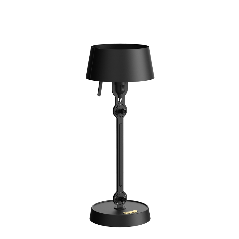 The Tonone Bolt Table Small is a design by Anton de Groof. The sturdy industrial lamp series BOLT is recognisable by functionality in shape, clean lines, and the iconic leading role of the wingnut. The Bolt series is available in 29 models. De Bolt Table Small is characterised by an adjustable powder-coated steel arm and an open shade made of powder-coated aluminium. The open shade ensures a nice distribution of light. The table lamp is adjustable in 2 places with the wingnut.