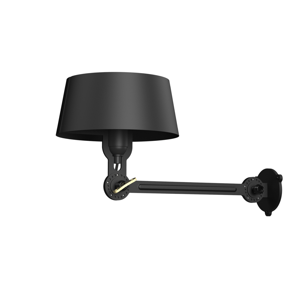 The Tonone Bolt Wall Underfit is a design by Anton de Groof. The sturdy industrial lamp series BOLT is recognisable by functionality in shape, clean lines, and the iconic leading role of the wingnut. The Bolt series is available in 29 models. The wall lamp is characterised by an adjustable powder-coated steel arm and an open shade made of powder-coated aluminium.