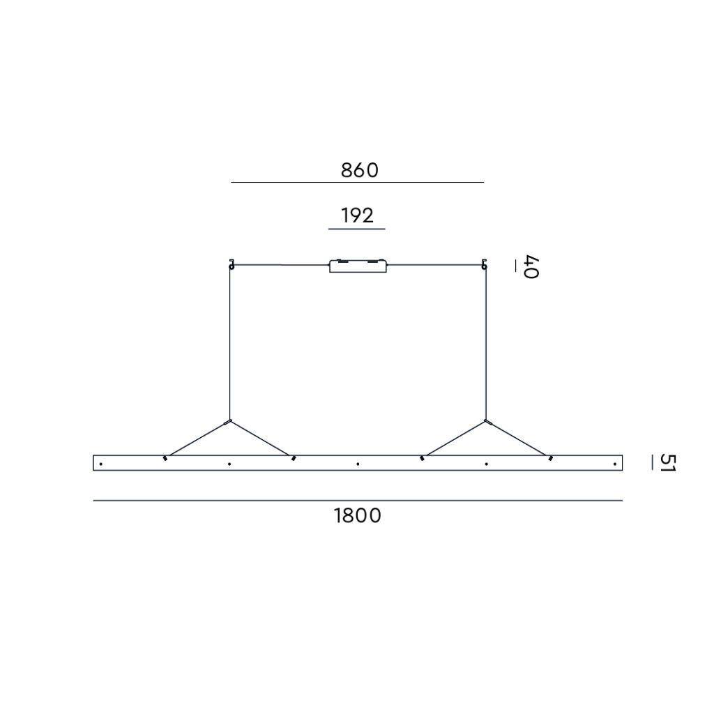 A linear LED lamp that allows for a graphic interplay of lines and with which you can experiment with composition. The designers of Tonone were inspired by the construction of a bridge when designing this pendant lamp. Just like a real bridge, Bridge has different supports, so that the load-bearing capacity is evenly distributed along its length. Bridge doesn't have a power cable that catches the eye. That's because the power is conducted by steel cables, which are also used to hang the lamp. Bridge is equipped with an internal LED light source with a color temperature of 2700 Kelvin, also known as 'extra warm white'. Bright and atmospheric.