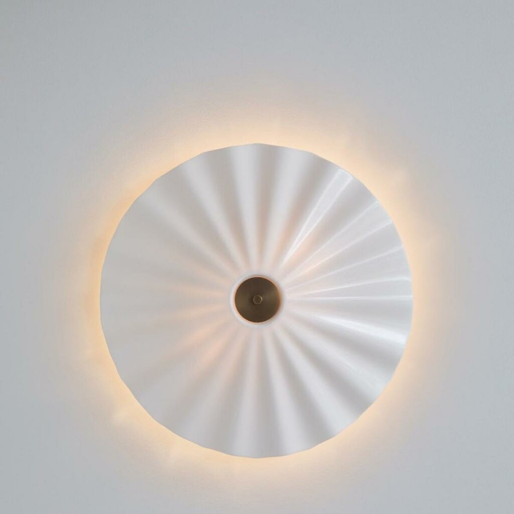Playful and refined at once, the striking Christie Wall Light is an eye-catching choice for any space. Its handmade bone china shade, gently corrugated and inspired by the rolling waves of the sea, creates harmoniously distributed illumination. When the bulbs are on, the shade itself glows beautifully, adding a touch of drama. The shade is complemented by gently brushed antique brass details, rounding off this spectacular design. Christie is also available as a pendant (in two sizes) and a ceiling light. Read More