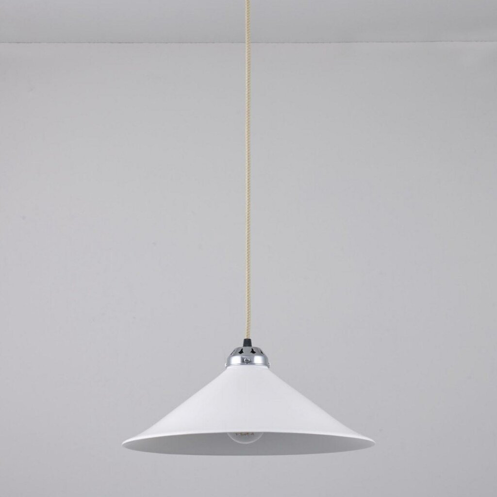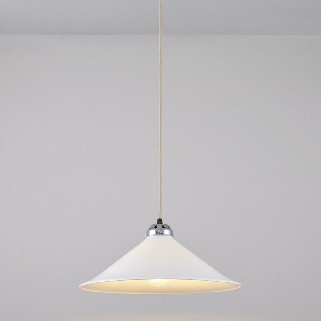 Traditionally inspired with a contemporary twist, the Cobb Pendant draws inspiration from a Dutch cobblers light. Modernised with a bone china shade and our smart braided cotton cable, this pendant is an ideal choice for lighting dining tables and kitchens, available with polished chrome, satin brass or antique brass metal work.