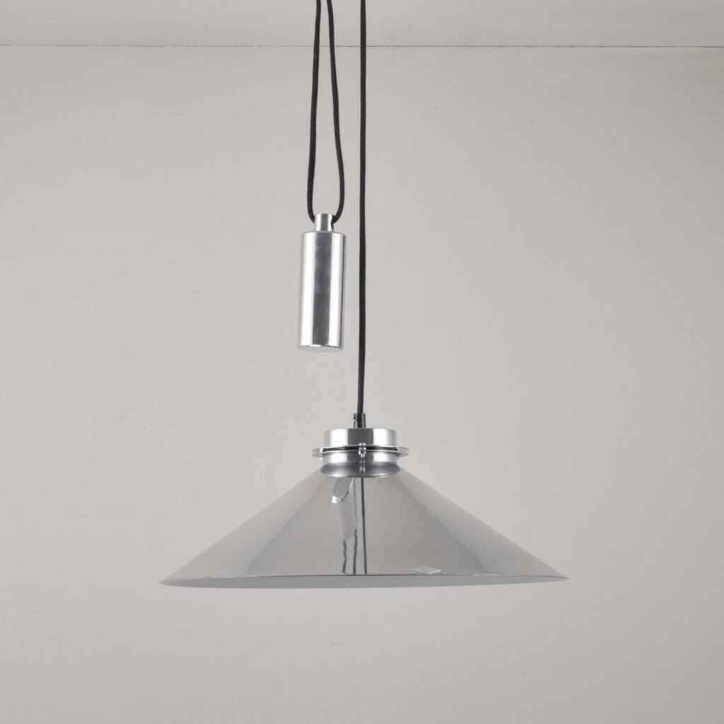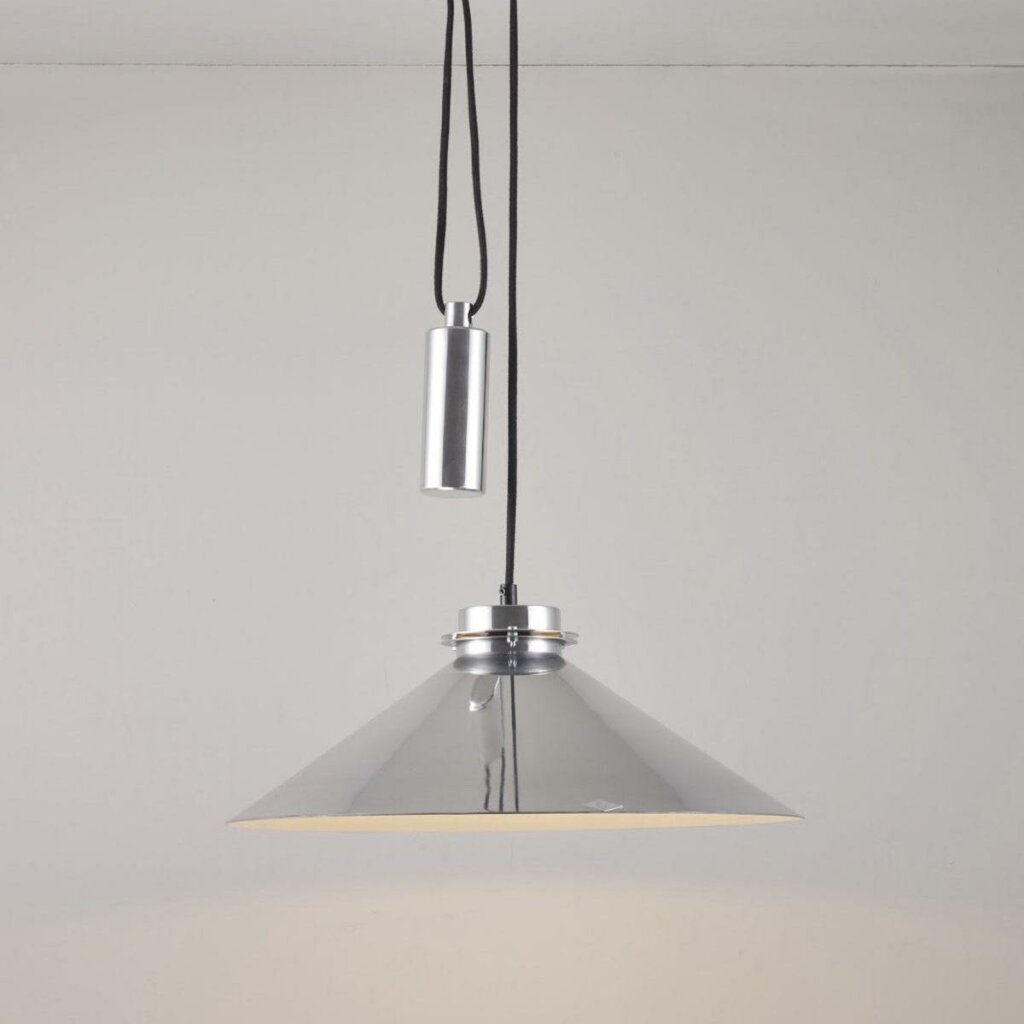 A modern and minimalist design, the Codie is available as a pendant or an adjustable rise & fall light. Handmade from polished aluminium, with a white interior, the wider shade allows for a large, even spread of light.