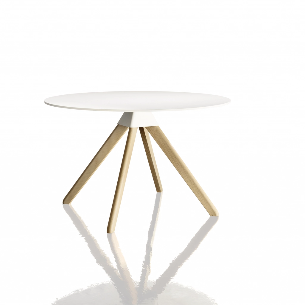 Table. Materials: frame in natural or painted solid beech; joint in polypropylene with glass fibre added; top in Fenix laminate.
