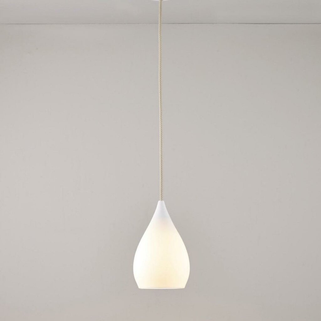 The Drop One Pendant has a classical cone shaped shade, handmade from bone china at our Stoke-on-Trent factory. Available in a matt or gloss finish, this pendant provides an elegantly simple central lighting source.