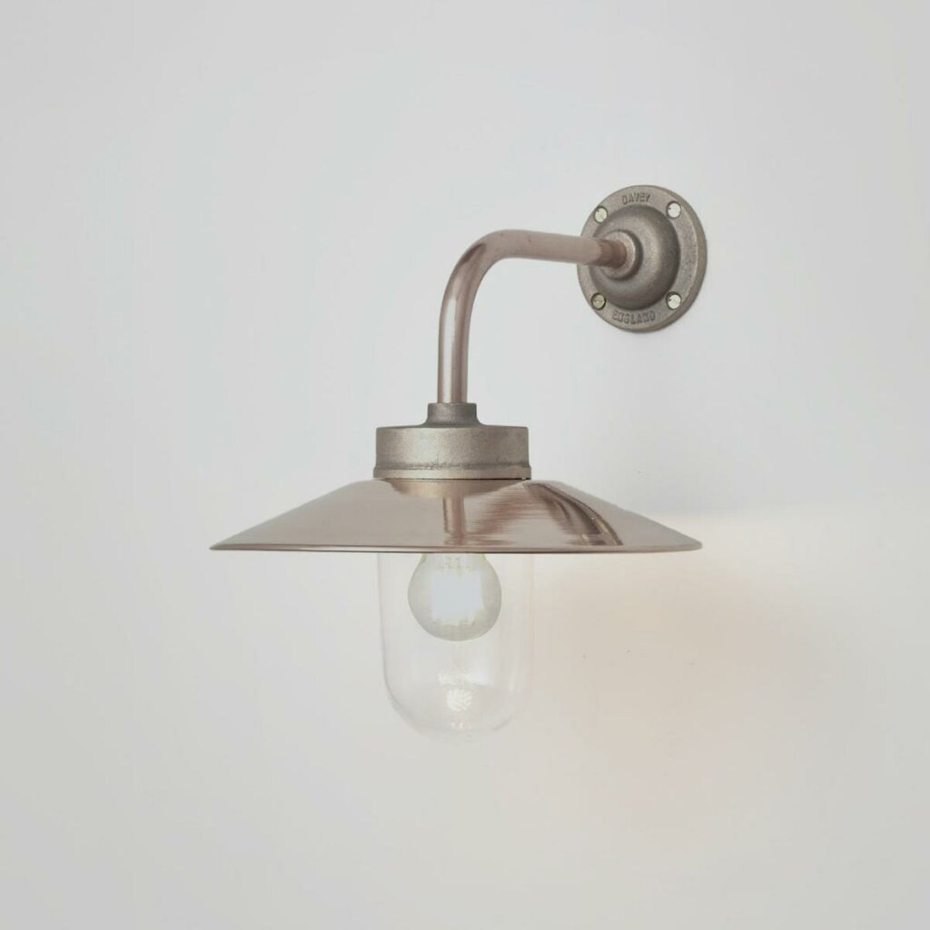 The Exterior Bracket Light is a classic, continental style well glass fitting, with a clean design that suits both traditional and modern locations. Expertly crafted from galvanised iron or raw sandblasted bronze, the wall light has a heavy cast construction. Available with a standard right angle arm or in the classic French canted version. Mounted either on a round base dome cover or on a corner fork. Read More