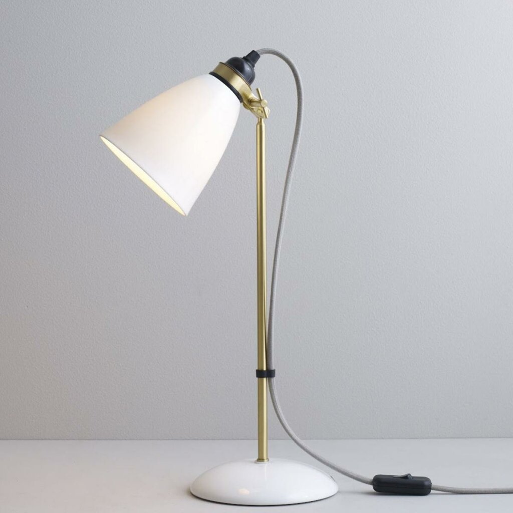 Our classic Hector updated for our 30th Anniversary with beautiful satin brass metal work that compliments the bone china wonderfully, adding a further touch of warmth to the Hector range. Available as a table, floor light and wall light (with and without a switch) with either black or grey braided cable.
