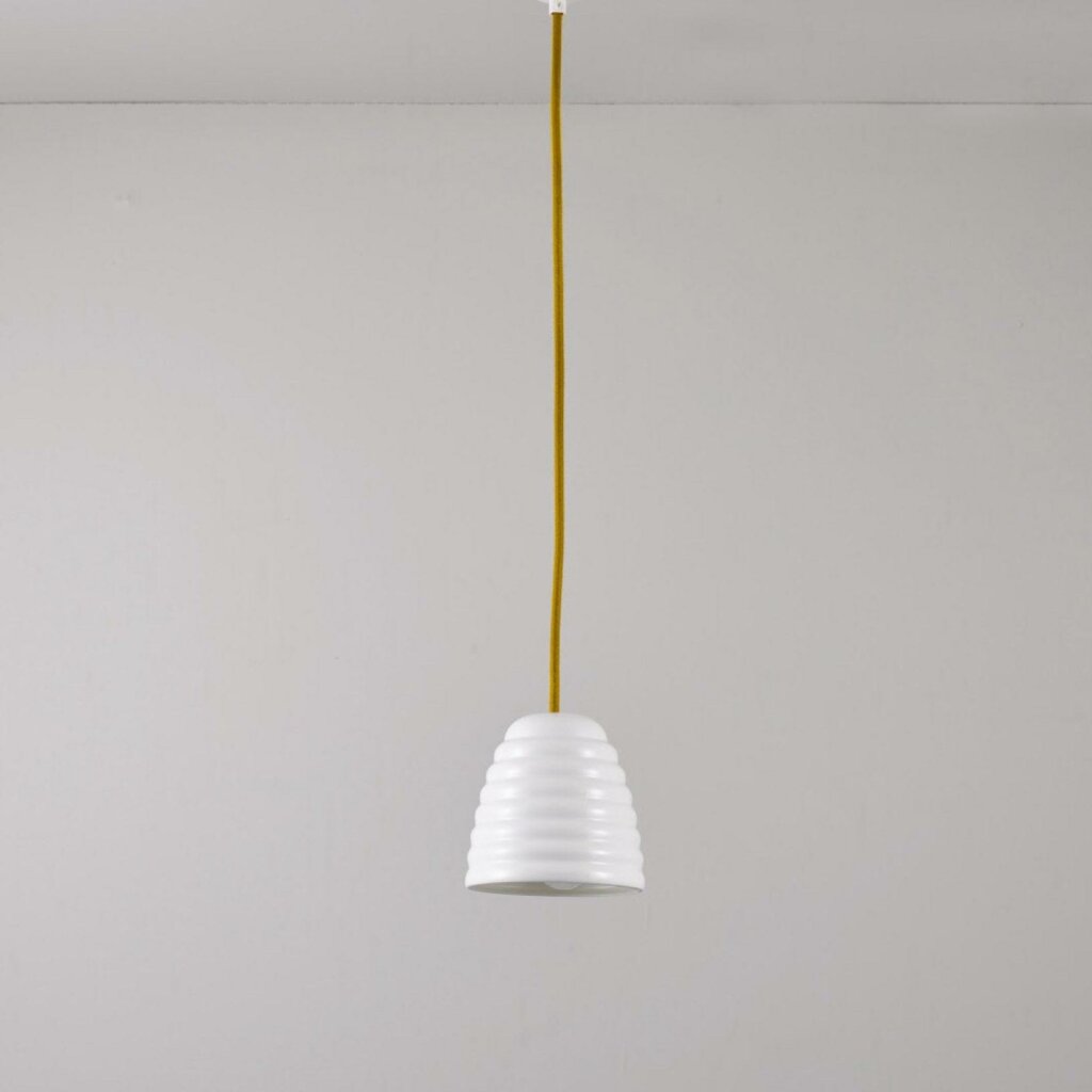 The Hector Bibendum, designed by Sir Terence Conran to celebrate Original BTC's 21st birthday and the Michelin building's centenary, is a fresh take on our Hector. With a white, rippled shade in bone china and colourful cotton braided cable, this is a stylish and contemporary lighting choice. Available in three different sizes.