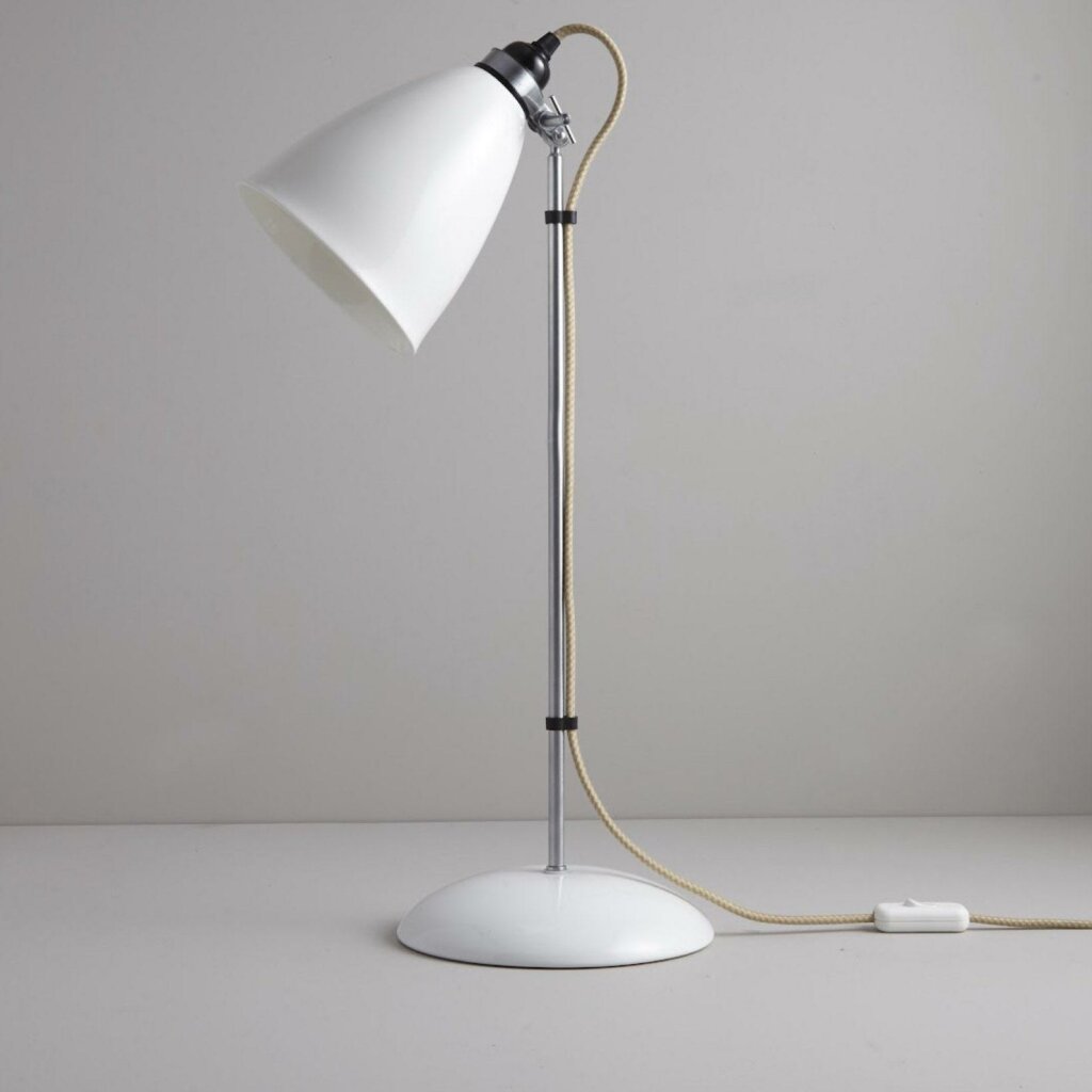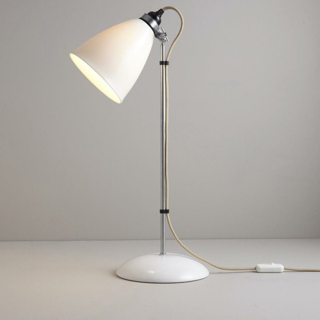 A British design classic in translucent bone china. With its moveable shade and smart cotton braided cable, the Hector Table Light perfectly combines style and function. Available with varying sized shades.