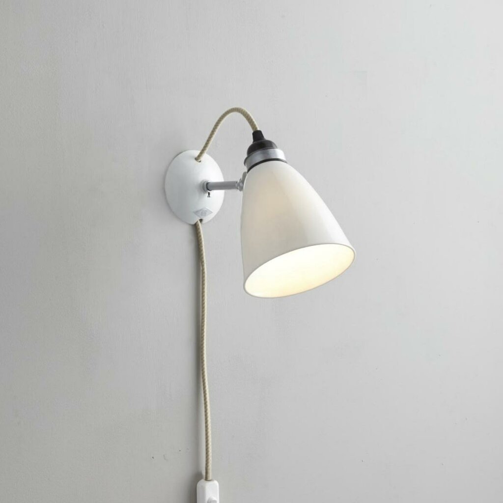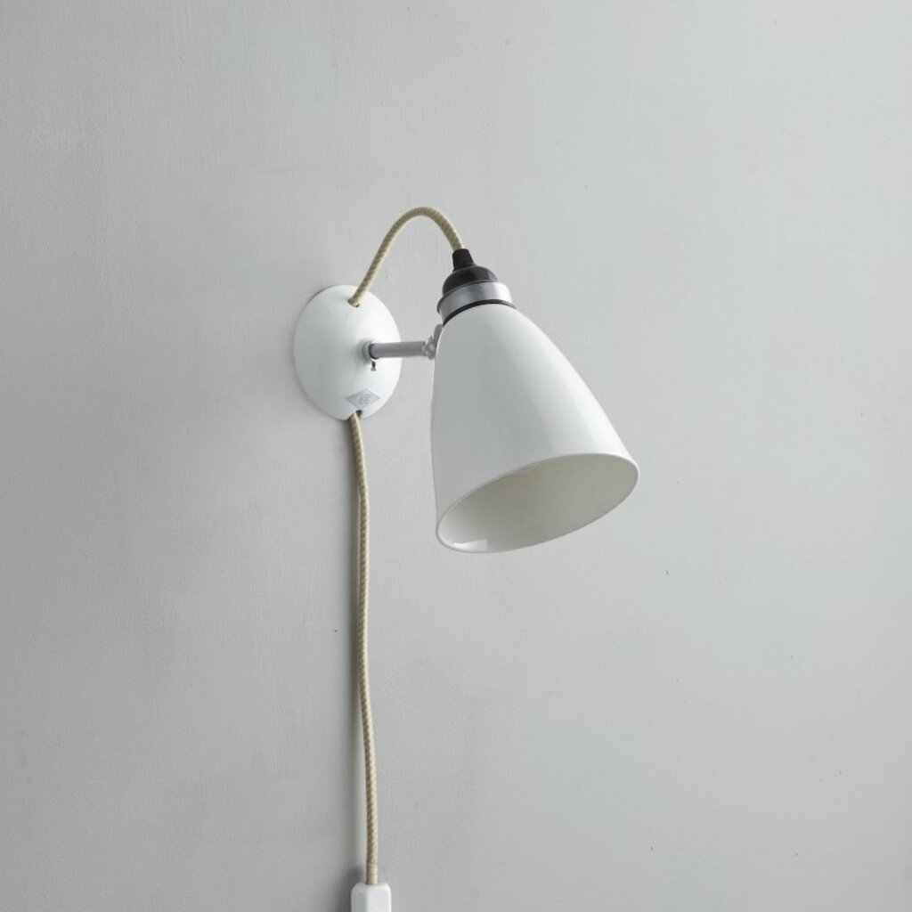 A British design classic in translucent bone china. The Hector Dome Wall Light features a smart cotton braided flex and moveable shade, which offers a source of ambient light. This truly is a practical, space-saving light fixture. Available in three different colours (natural white, light blue and light green), varying sized shades and with the option of a switched base.