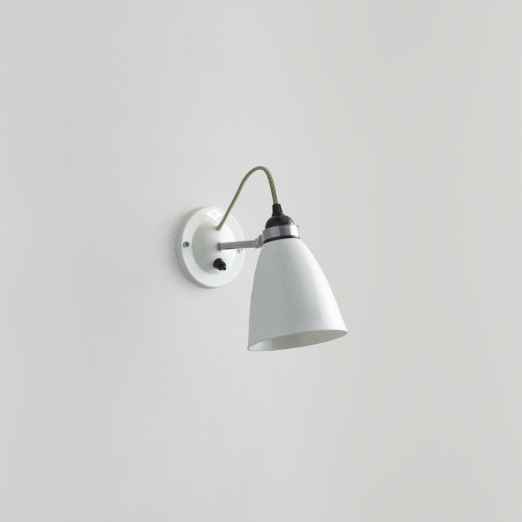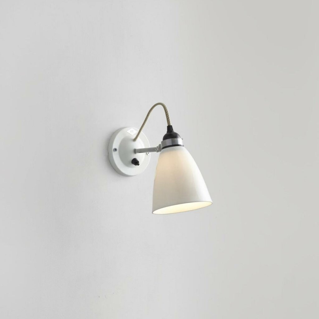 A British design classic in translucent bone china. The Hector Dome Wall Light features a smart cotton braided flex and moveable shade, which offers a source of ambient light. This truly is a practical, space-saving light fixture. Available in three different colours (natural white, light blue and light green), varying sized shades.