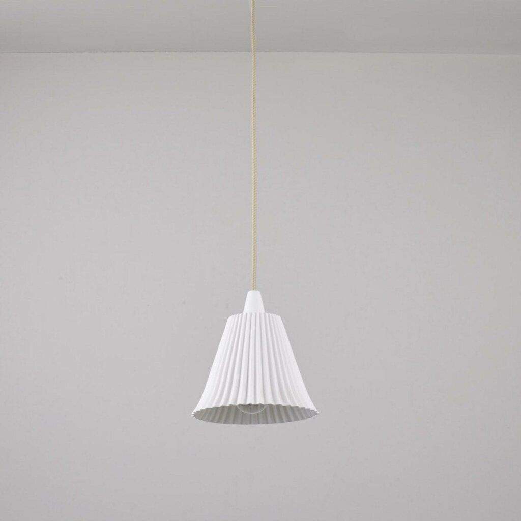 A pleated version of the original Hector design. Skillfull crafted from bone china, the architectural shade of the Hector Pleat offers a warm ambient glow when lit, and is matched beautifully by our signature cotton braided cable. The perfect combination of style and function. Available in two sizes.