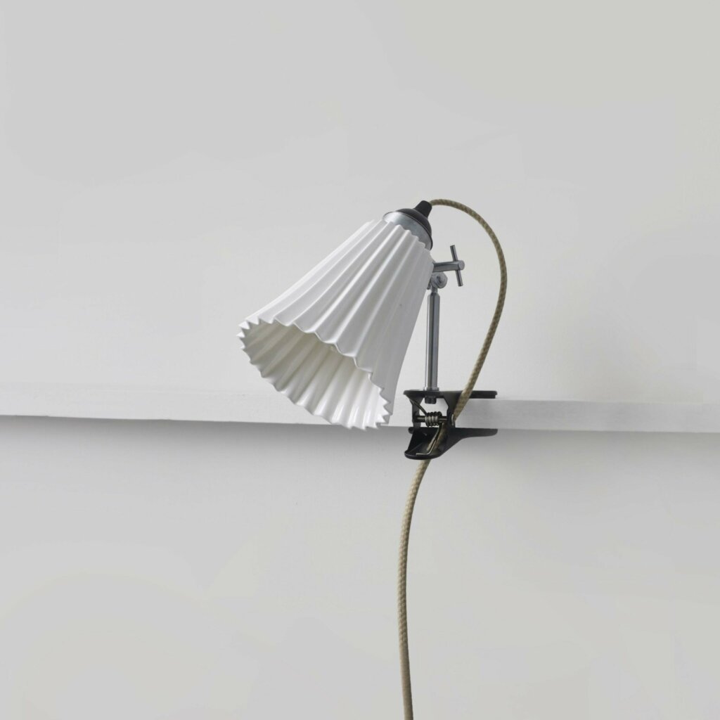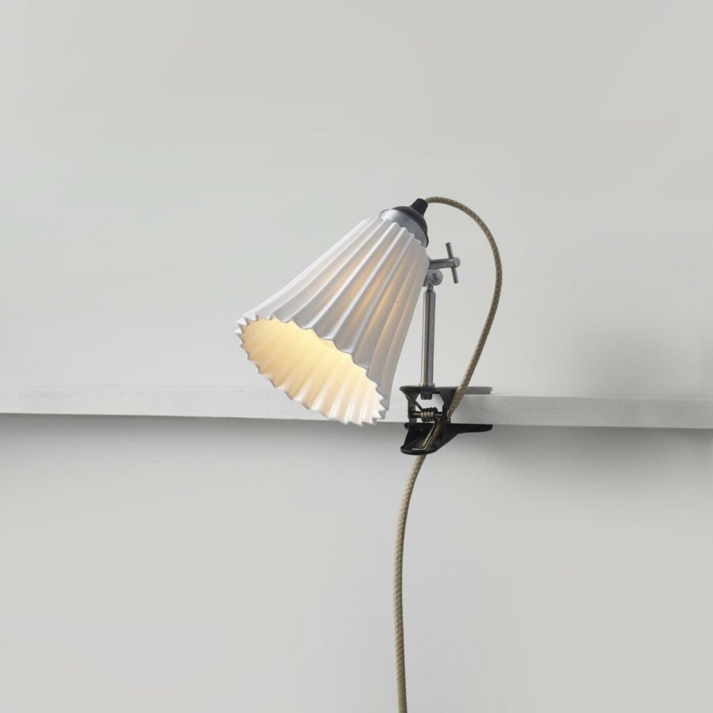 A British design classic in translucent bone china. With its moveable shade, smart cotton braided flex, and clip design, the Hector Pleat Clip Light marries style and function.