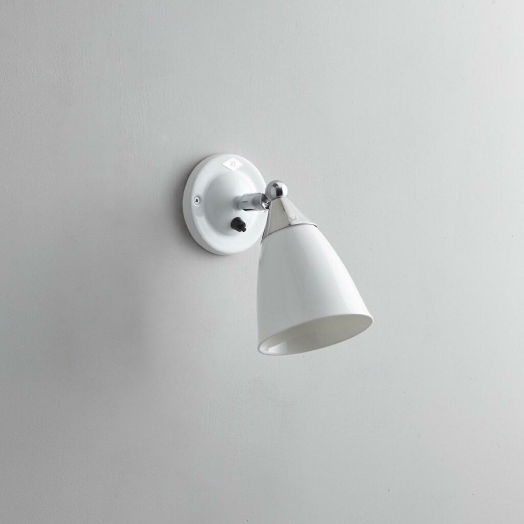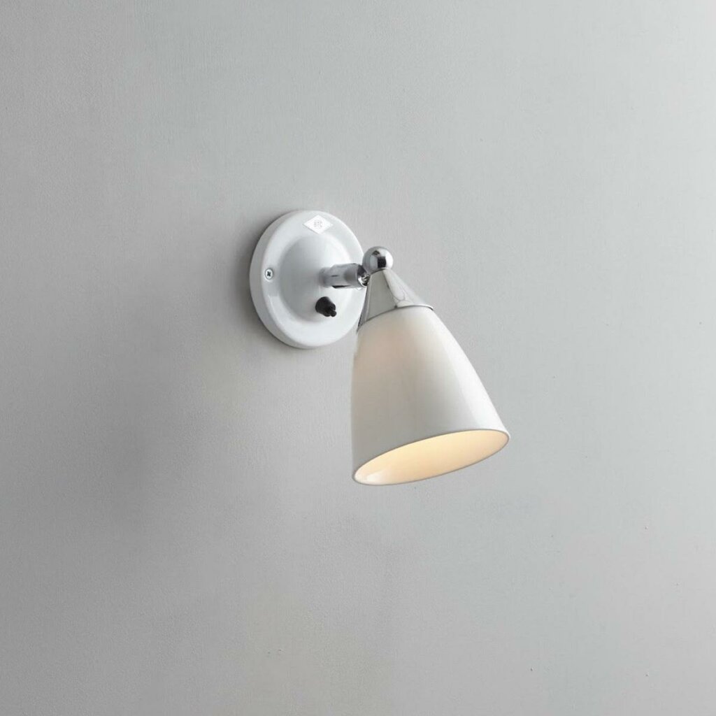 Our classic Mann Wall Light has a translucent bone china shade, which can be moved, angled or adjusted to bring greater flexibility and creative scope for interior lighting. Bone china switched base.