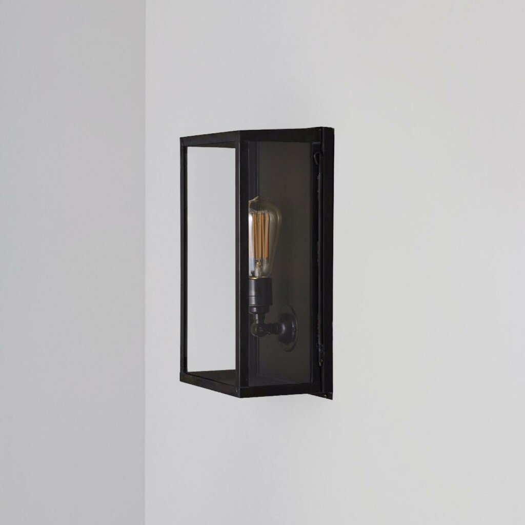 An attractive internally glazed Box Wall Light in brass or nickel plated finishes. Available in three sizes with glass that is fitted inside the box frame on five sides; clear or frosted glass as an option. IP44 rated, this wall light is suitable for exterior and bathroom use.