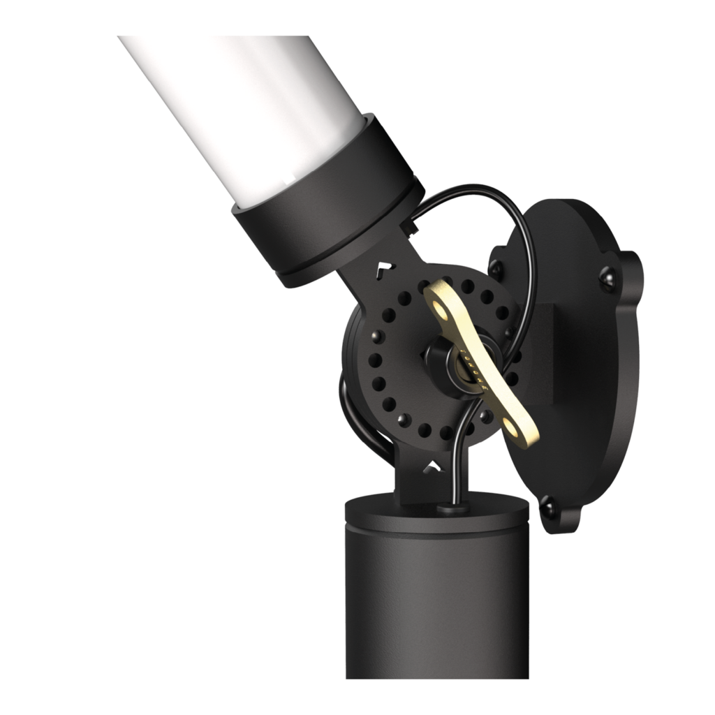 The wall lamp is characterised by its adjustable LED tube. The lamp driver is located on the fixture and can be adjusted with the supplied wing nut. The solid brass wing is included to adjust the hinge as desired. In addition to being a functional tool, the wing nut is integrated into the design of the lamp, making it a distinctive visual element.