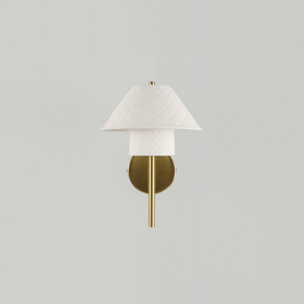 Continuing the Oxford collection comes the simple and elegant wall light. Once more the luxurious paired shades with their quilted texture are mounted upon a brushed brass backplate. Emitting a warm, atmospheric glow, the shades come to life when switched on, as the light interacts with crisp lines running across the textured surface.