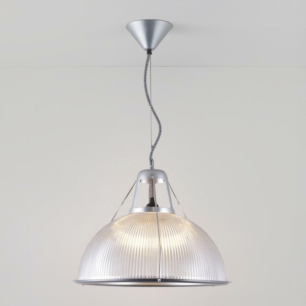 Drawing inspiration from a light on the Paris Metro, the Phane Prismatic Pendant provides a great source of central lighting. The prismatic glass, combined with its wide curving shade, ensures an ample spread of diffused light. Available in two sizes.