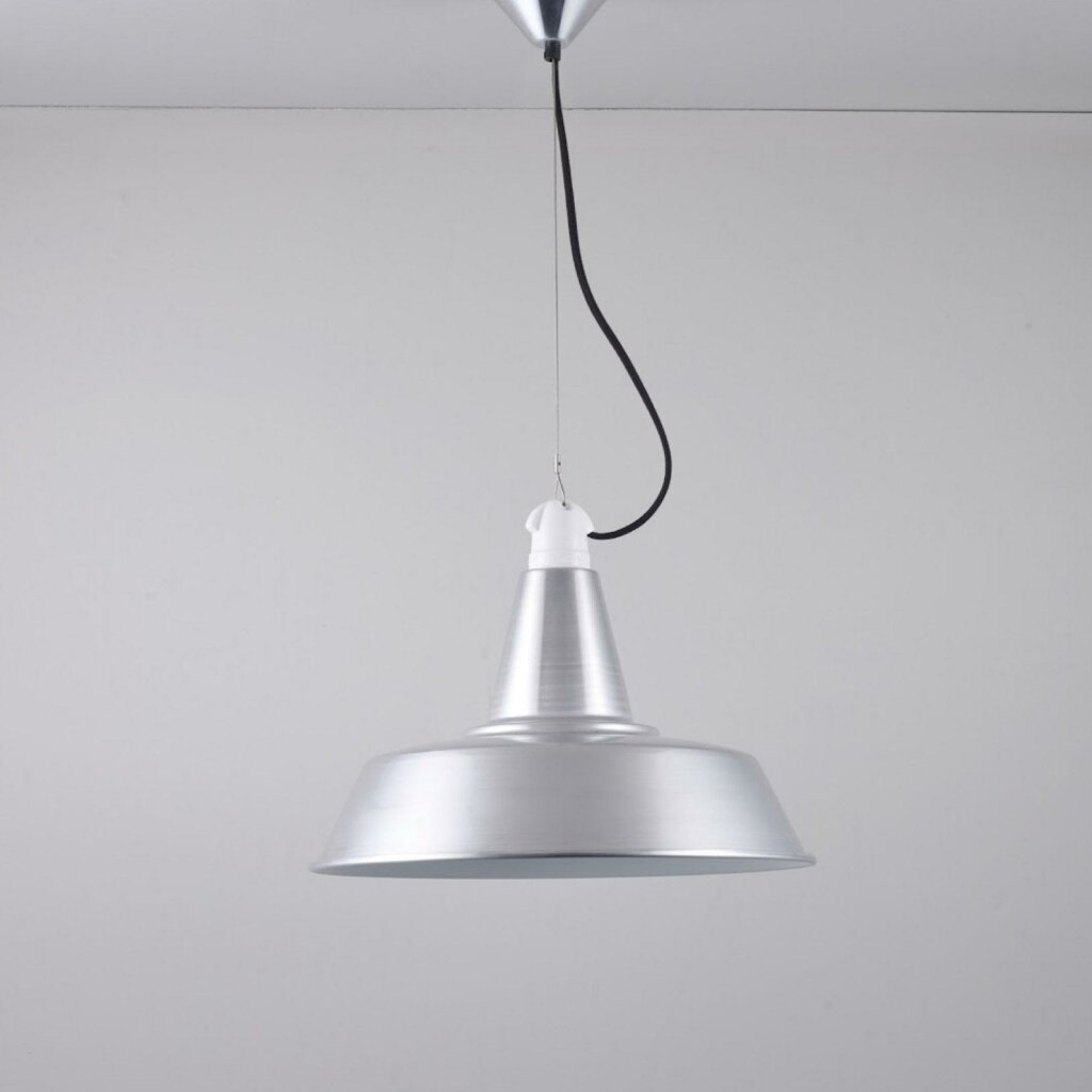 The Quay Pendant in polished aluminium is an understated light, ideal for minimalist or industrial interiors. The pendant features a wide base to provide a good general spread of light and sleek cotton braided cable.