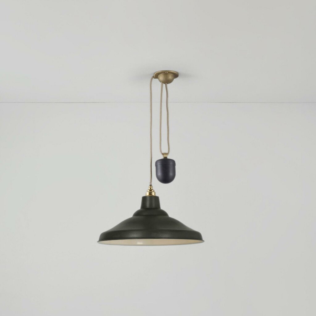 Originally found in 1920s classrooms and libraries, the Rise & Fall School Light features a unique hand-spun reflector and complementary counterweight. Its clever design allows you to easily adjust the height, making it an ideal choice for dining tables and kitchens. Simply lower the light for intimate dinners or raise for a broader pool of general light. This pendant is available in either painted aluminium or copper, with different coloured interiors. Read More
