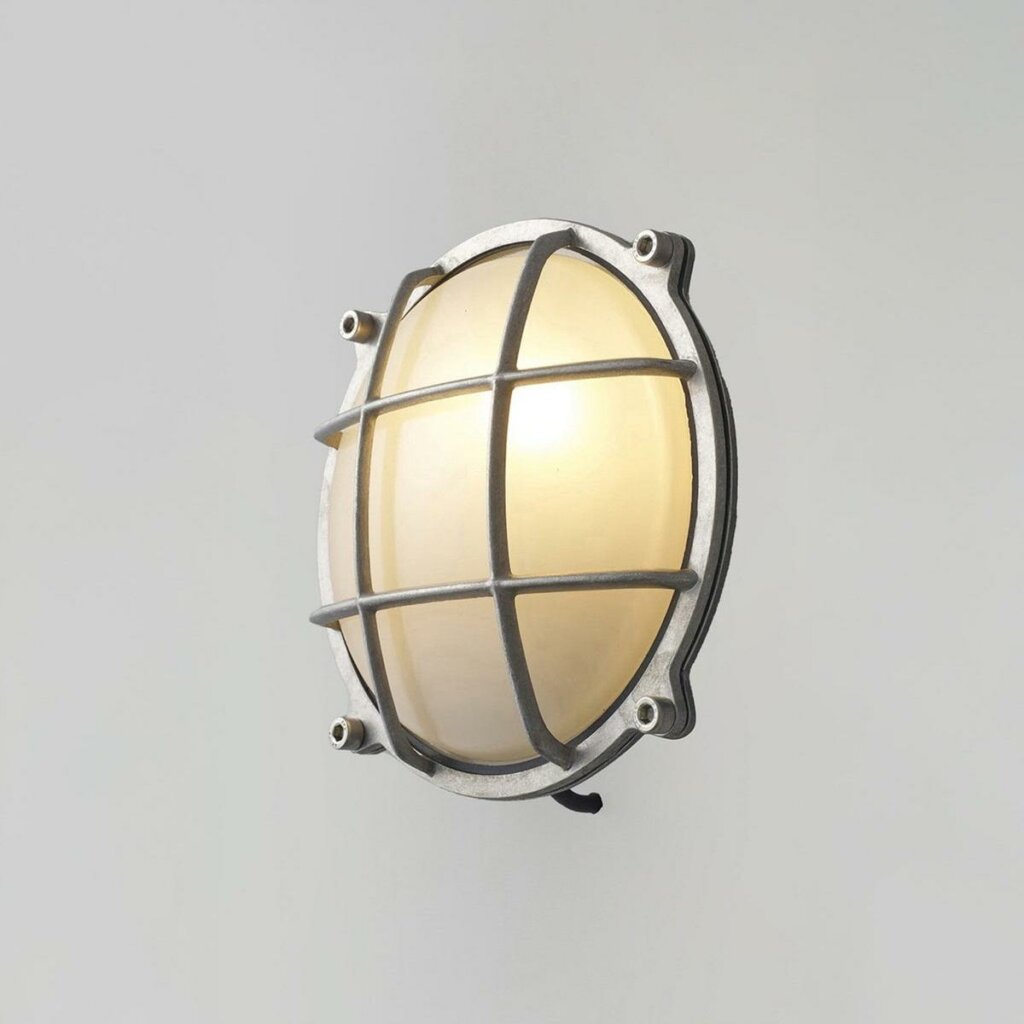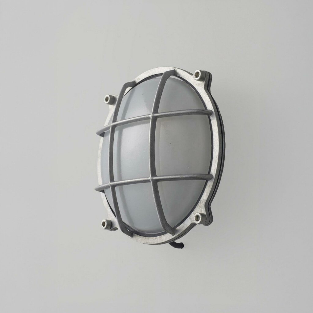 A round, die-cast aluminium bulkhead with frosted glass. Front bezel secured by four stainless steel socket head screws. Rear cable entry and through backplate fixing. Will accept ballasted 15W CFL.