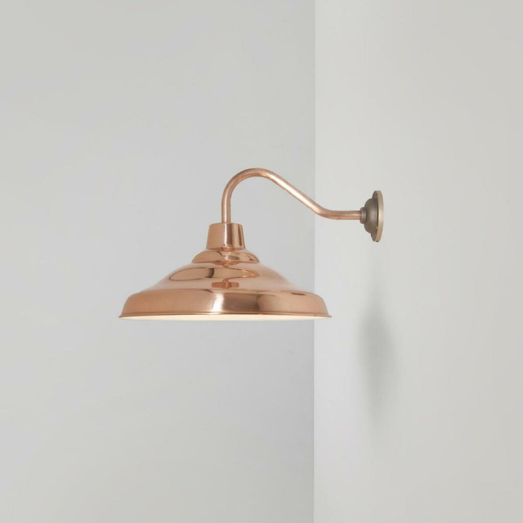 Originally found in 1920s classrooms and libraries, Davey's School Wall Light features a unique hand-spun reflector and elegant swan neck. Available in either painted aluminium or copper, with different coloured interiors.