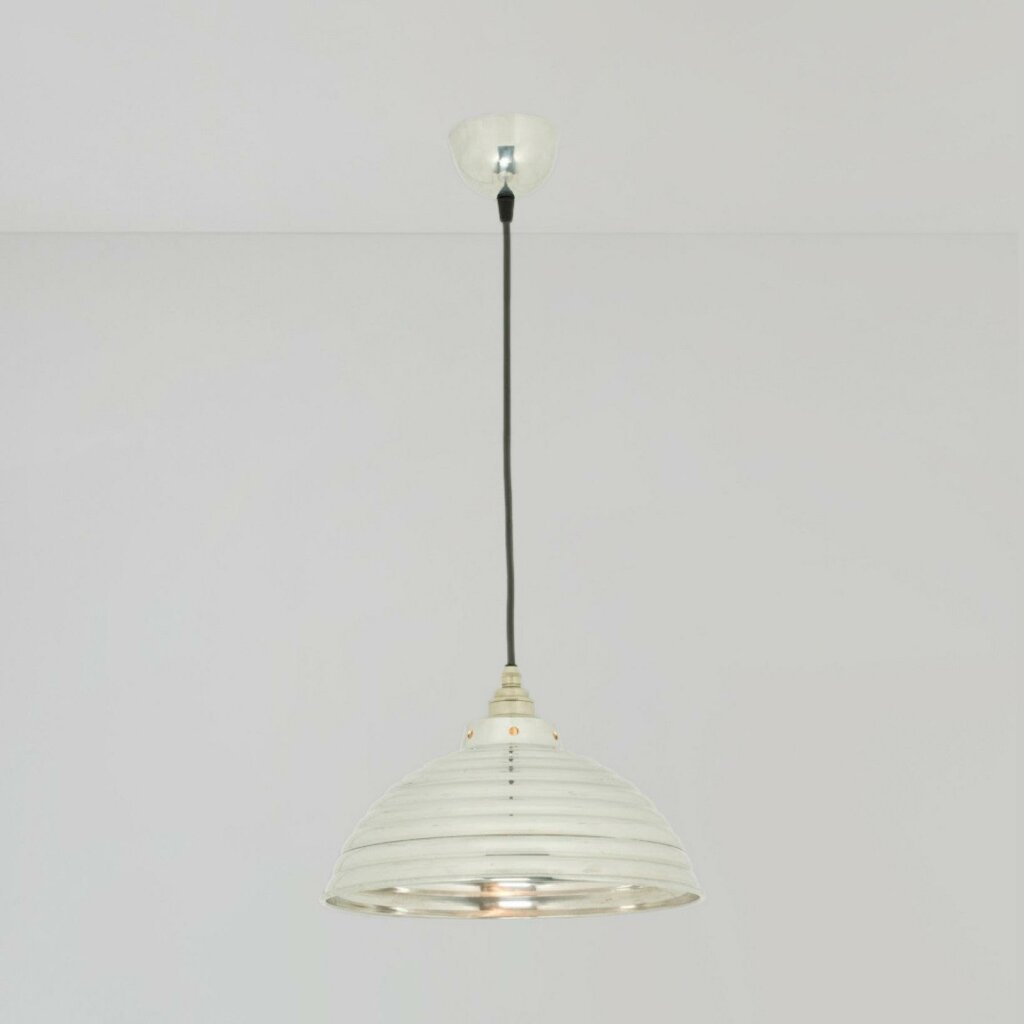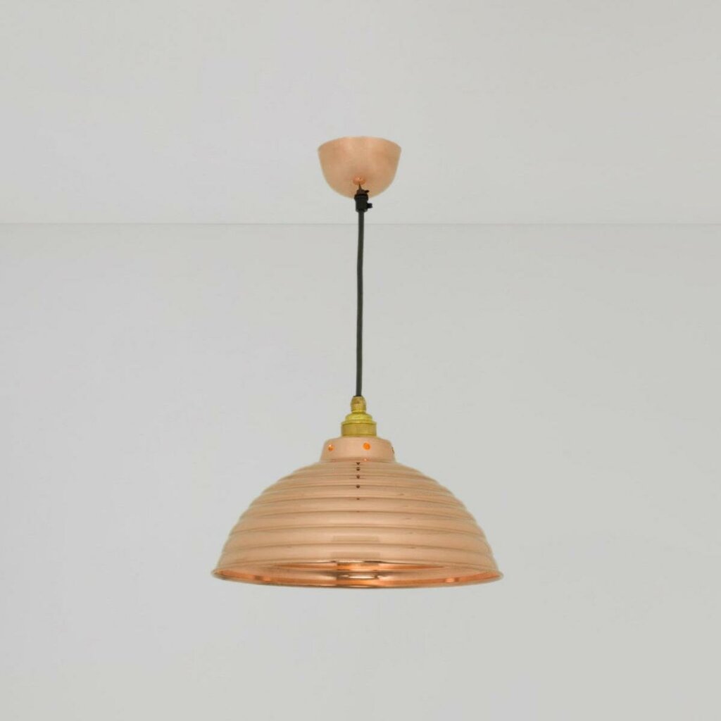 Davey's Spun Ripple Pendant features a corrugated aluminium reflector and signature braided cable. Available in either polished aluminium or copper, this unique pendant will be a welcome addition to any kitchen or dining room.