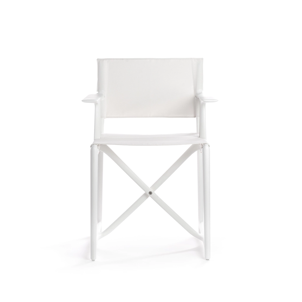 Folding director’s chair. Materials: polypropylene with glass fibre added. Seat and back in fabric (suitable for outdoor use) or in leather.