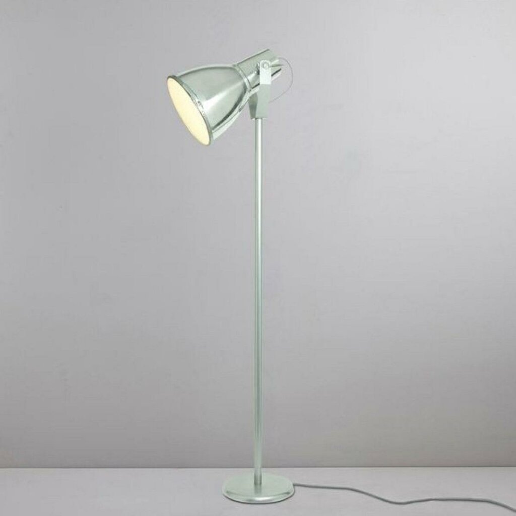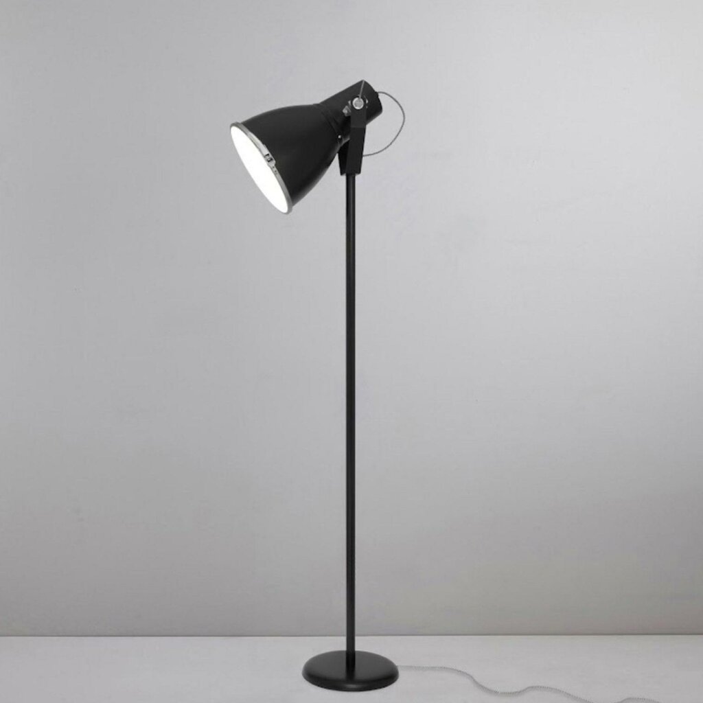 Inspired by the searchlight on the back of a toy lorry, the Stirrup collection is the ultimate in industrial chic. The freestanding floor light has an adjustable shade and frosted glass visor to prevent glare and provide a softer, more diffused light. Available in natural aluminium, black and white.