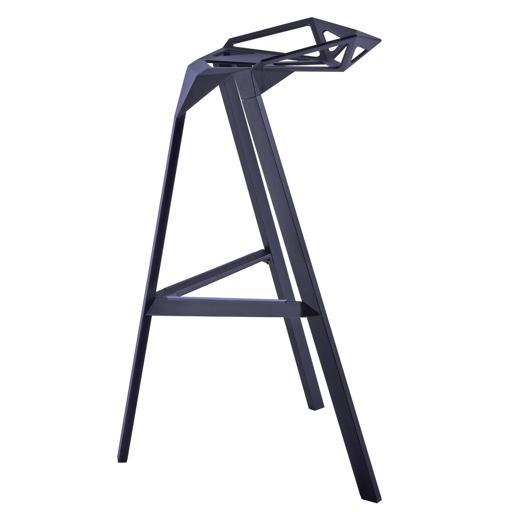 Stacking stool. Materials: legs in anodised aluminium or painted in polyester powder. Seat in die-cast aluminium treated with sputtered fluorinated titanium and painted in polyester powder. Suitable for outdoor use. Cushion also available.