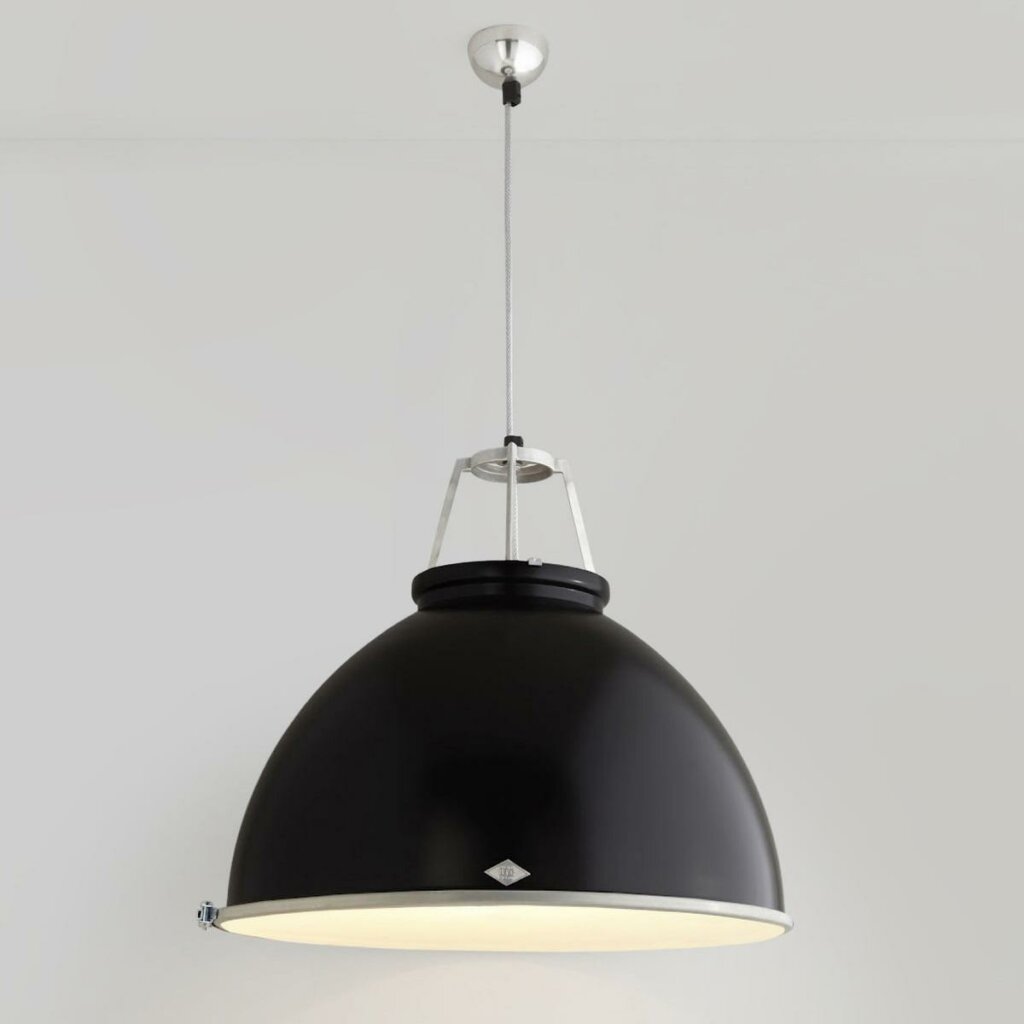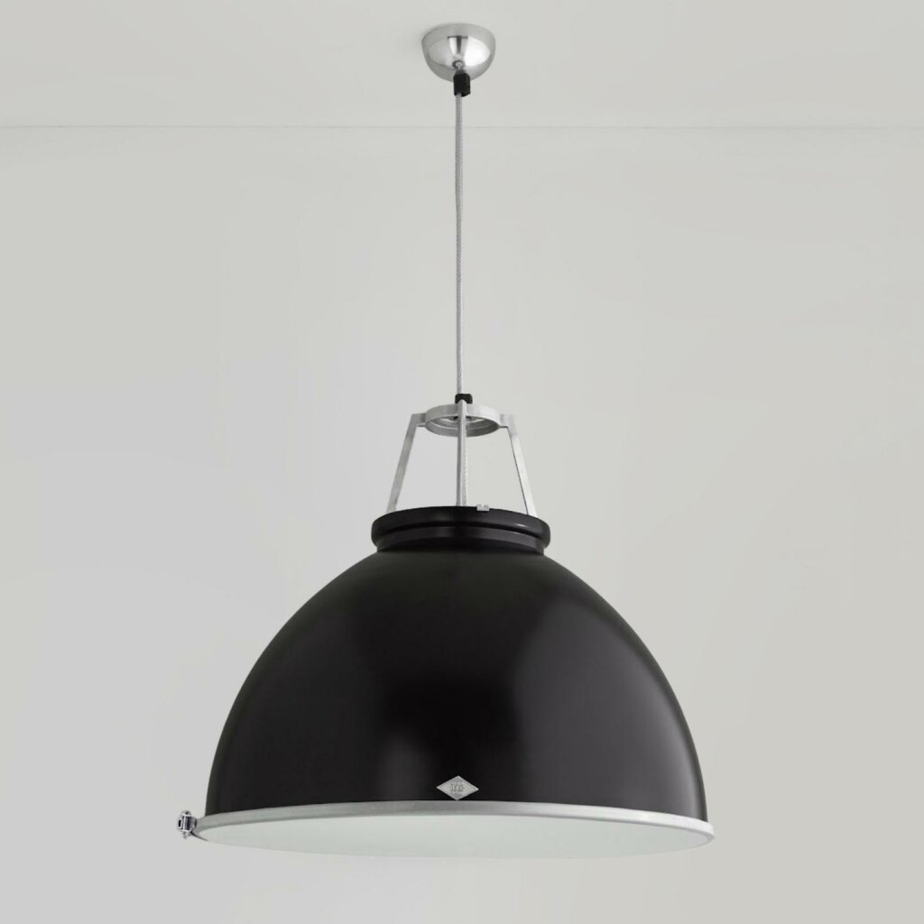 An original 1940s design, frequently seen in factories and industrial units of the period. Available in three different sizes and an array of colours, including polished aluminium, black, yellow, olive green, putty grey, red and white. Supplied with an armour steel braided cable and a choice of contrasting coloured interiors. There is an optional etched glass visor to help reduce glare and create a softer, more diffused light.