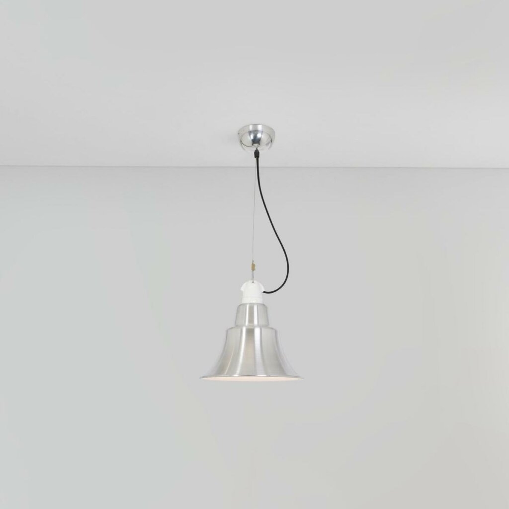 Inspired by factory lights of the British industrial era, the Zoe Pendant features a hand spun reflector and a slip cast bone china lamp holder, finished with our signature cotton braided cable. Available with either a polished aluminium or white powder coated shade.
